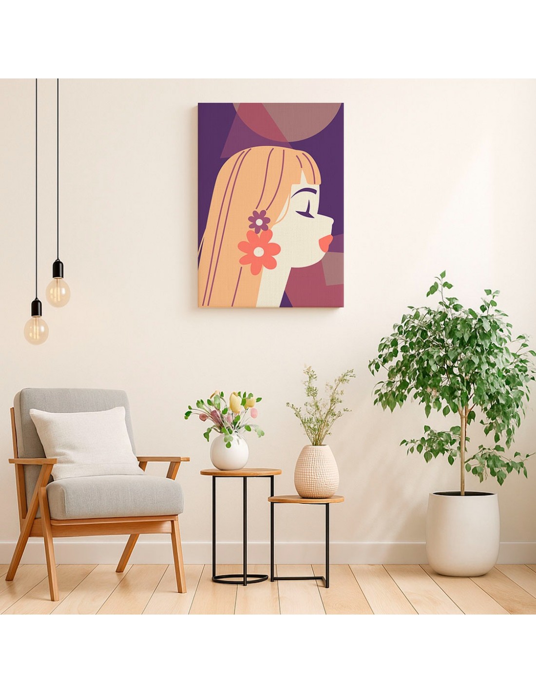 El Cuadro Abstracto Mujer 35x50cm Lienzografía Diseño 0265 de OSGESTUDIO es impreso en lienzo importado de alta calidad, tensado sobre bastidor de madera de 3 cm de espesor. Elaborado con impresión digital alta resolución, acabado semi brillante, textura artística y montaje listo para colgar. Ideal para decorar salas, estudios, oficinas, habitaciones y espacios con estilo clásico, elegante y artístico.