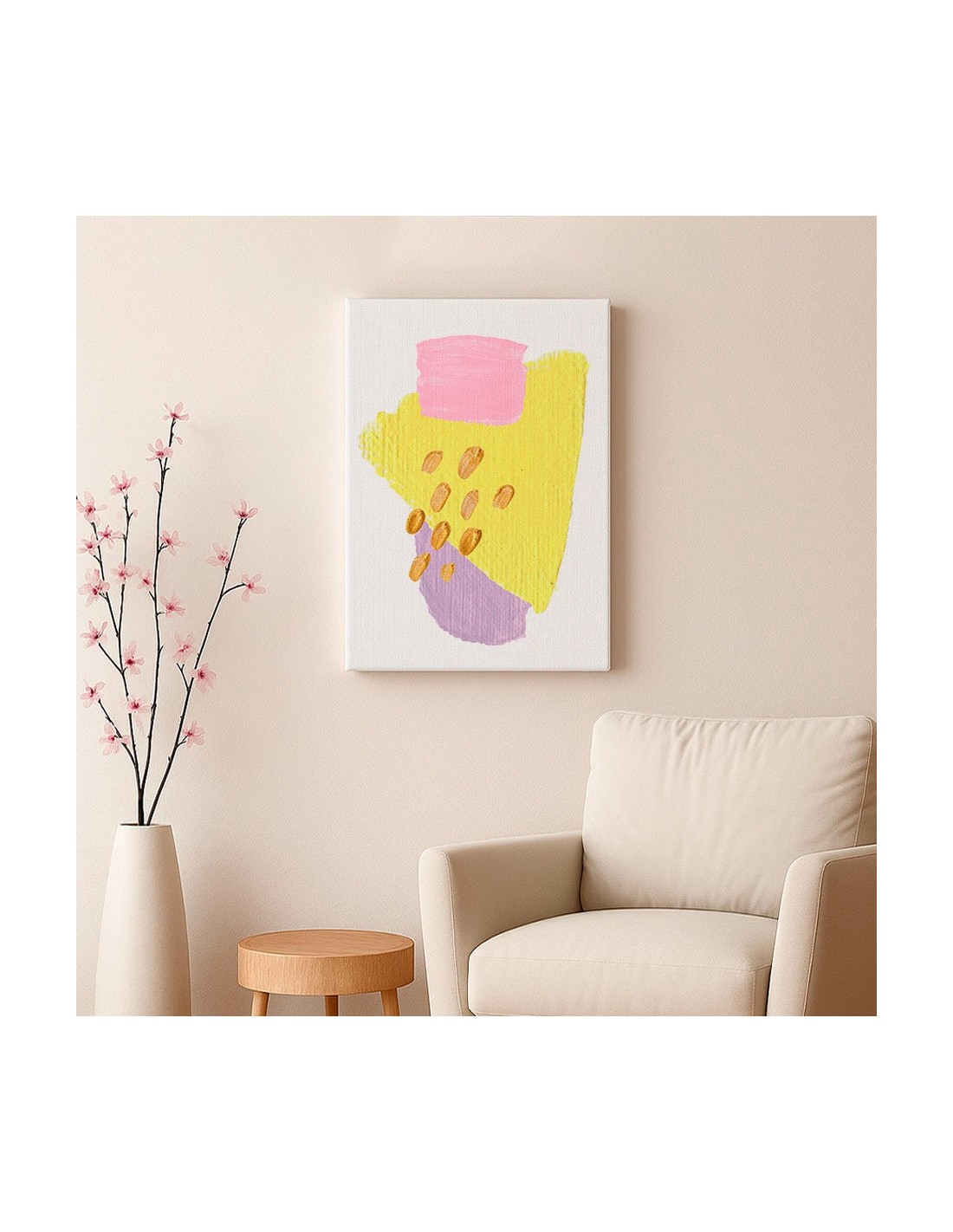 El Cuadro Abstracto Bonito 35x50cm Lienzografía Diseño 0340 de OSGESTUDIO es impreso en lienzo importado de alta calidad, tensado sobre bastidor de madera de 3 cm de espesor. Elaborado con impresión digital alta resolución, acabado semi brillante, textura artística y montaje listo para colgar. Ideal para decorar salas, estudios, oficinas, habitaciones y espacios con estilo clásico, elegante y artístico.
