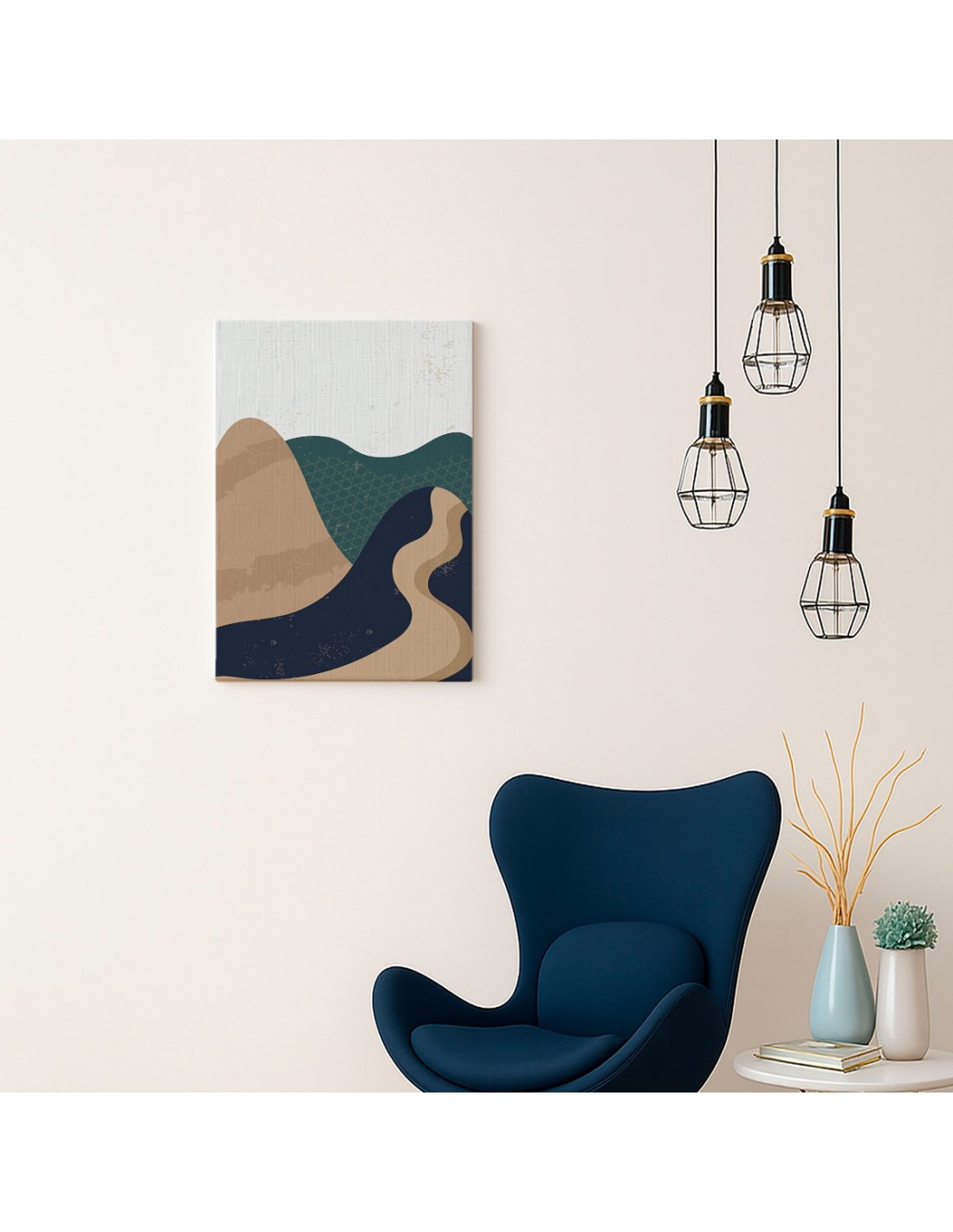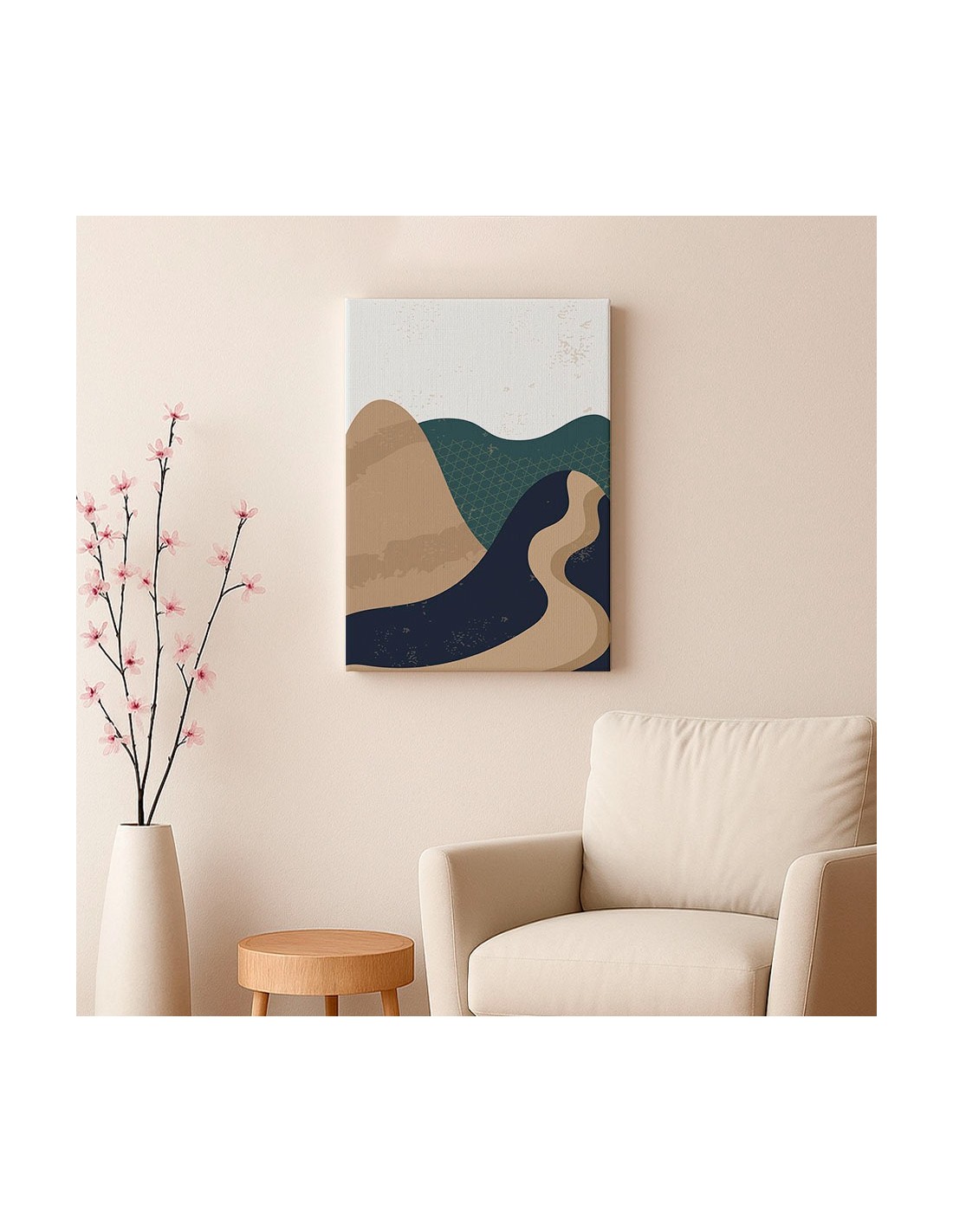 El Cuadro Abstracto Paisaje 35x50cm Lienzografía Diseño 0352 de OSGESTUDIO es impreso en lienzo importado de alta calidad, tensado sobre bastidor de madera de 3 cm de espesor. Elaborado con impresión digital alta resolución, acabado semi brillante, textura artística y montaje listo para colgar. Ideal para decorar salas, estudios, oficinas, habitaciones y espacios con estilo clásico, elegante y artístico.