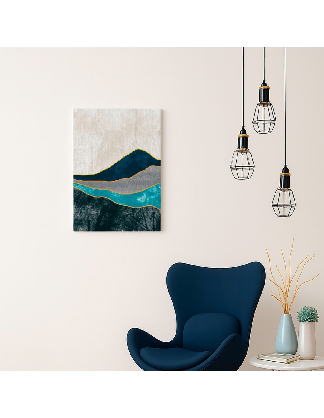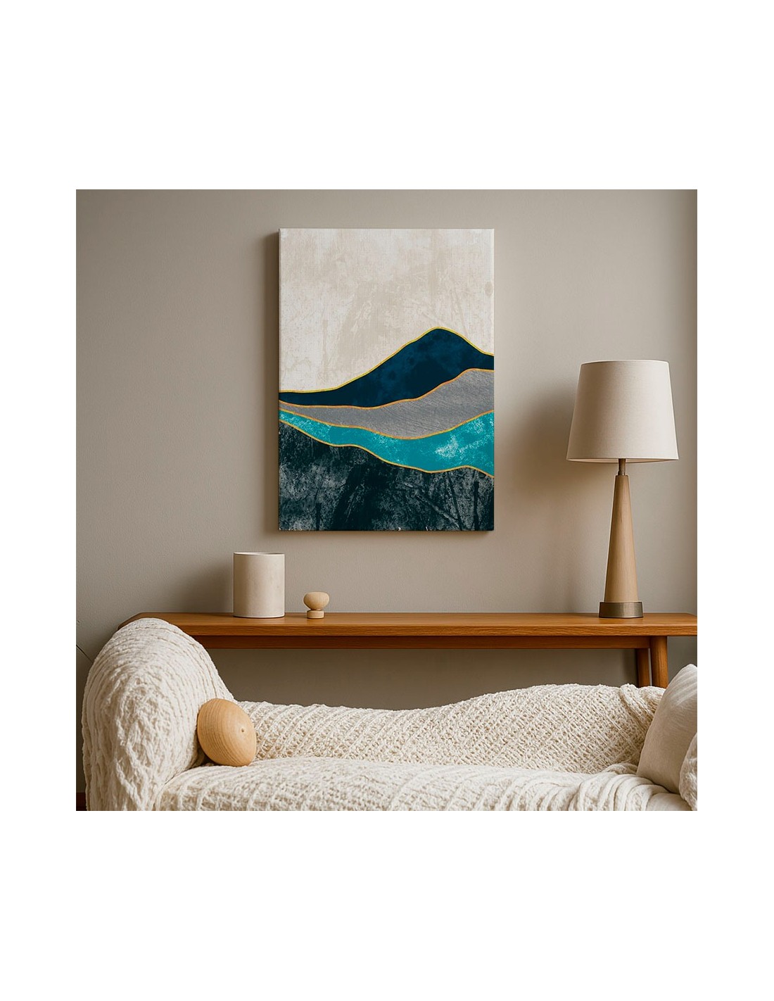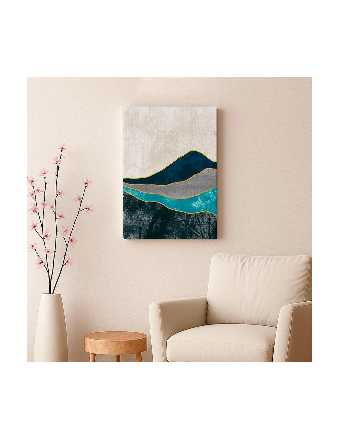 El Cuadro Abstracto Paisaje 35x50cm Lienzografía Diseño 0354 de OSGESTUDIO es impreso en lienzo importado de alta calidad, tensado sobre bastidor de madera de 3 cm de espesor. Elaborado con impresión digital alta resolución, acabado semi brillante, textura artística y montaje listo para colgar. Ideal para decorar salas, estudios, oficinas, habitaciones y espacios con estilo clásico, elegante y artístico.