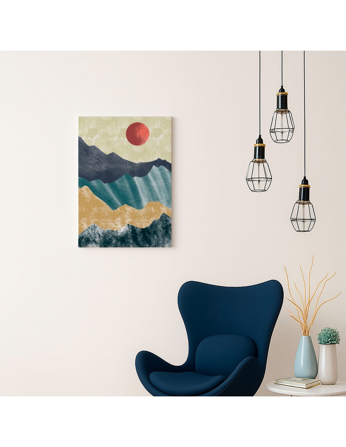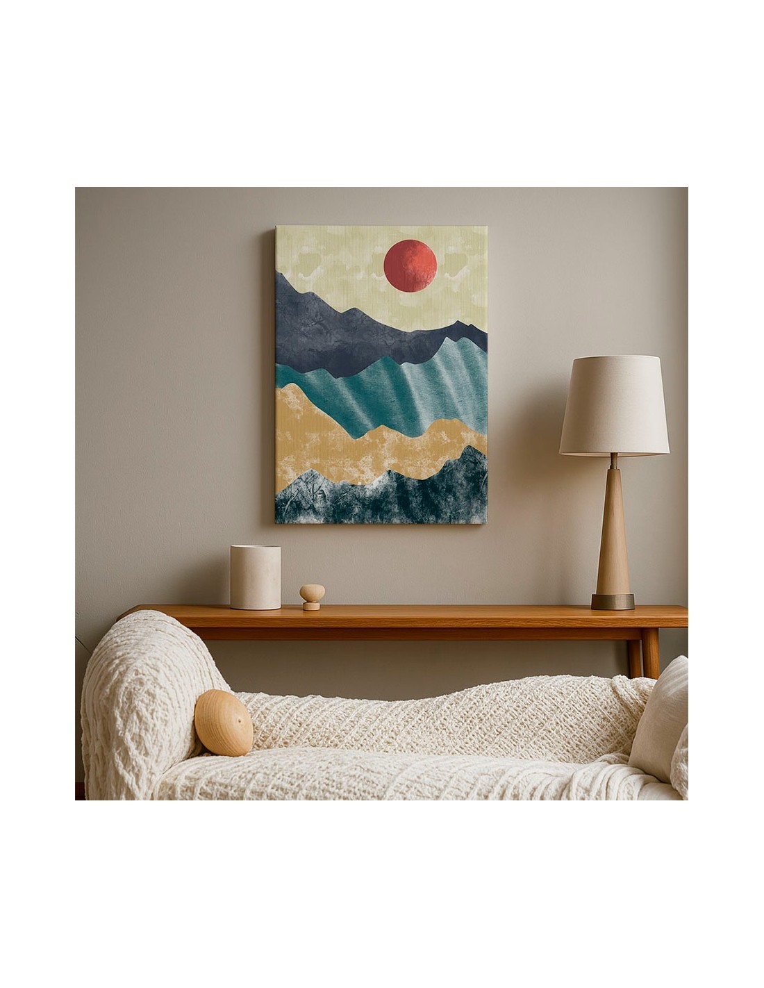El Cuadro Abstracto Paisaje 35x50cm Lienzografía Diseño 0357 de OSGESTUDIO es impreso en lienzo importado de alta calidad, tensado sobre bastidor de madera de 3 cm de espesor. Elaborado con impresión digital alta resolución, acabado semi brillante, textura artística y montaje listo para colgar. Ideal para decorar salas, estudios, oficinas, habitaciones y espacios con estilo clásico, elegante y artístico.