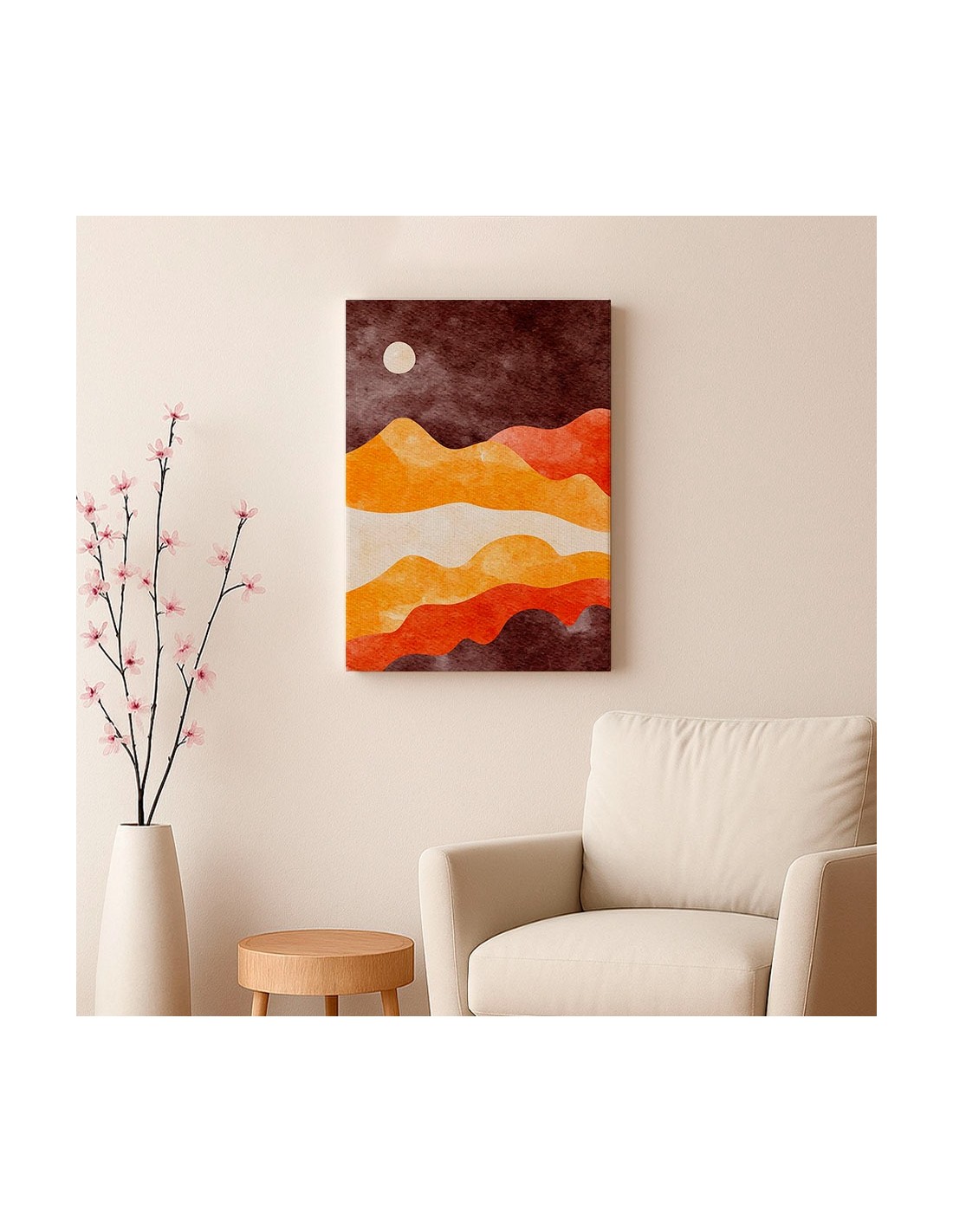 El Cuadro Abstracto Paisaje 35x50cm Lienzografía Diseño 0378 de OSGESTUDIO es impreso en lienzo importado de alta calidad, tensado sobre bastidor de madera de 3 cm de espesor. Elaborado con impresión digital alta resolución, acabado semi brillante, textura artística y montaje listo para colgar. Ideal para decorar salas, estudios, oficinas, habitaciones y espacios con estilo clásico, elegante y artístico.
