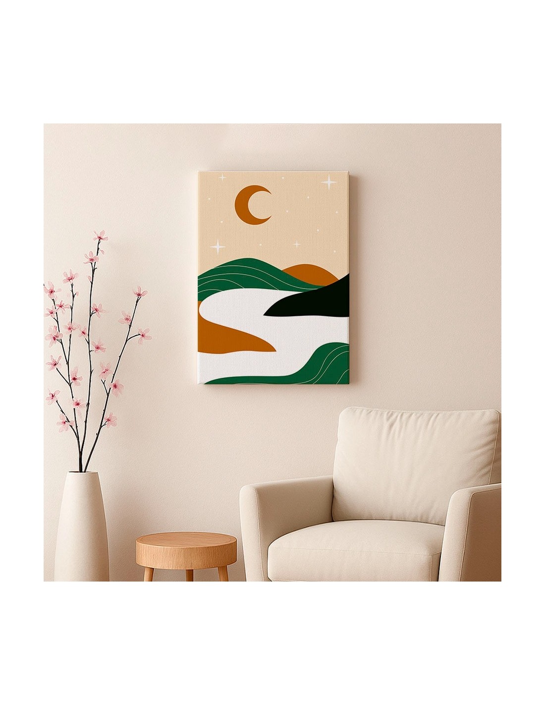 El Cuadro Abstracto Paisaje 35x50cm Lienzografía Diseño 0384 de OSGESTUDIO es impreso en lienzo importado de alta calidad, tensado sobre bastidor de madera de 3 cm de espesor. Elaborado con impresión digital alta resolución, acabado semi brillante, textura artística y montaje listo para colgar. Ideal para decorar salas, estudios, oficinas, habitaciones y espacios con estilo clásico, elegante y artístico.