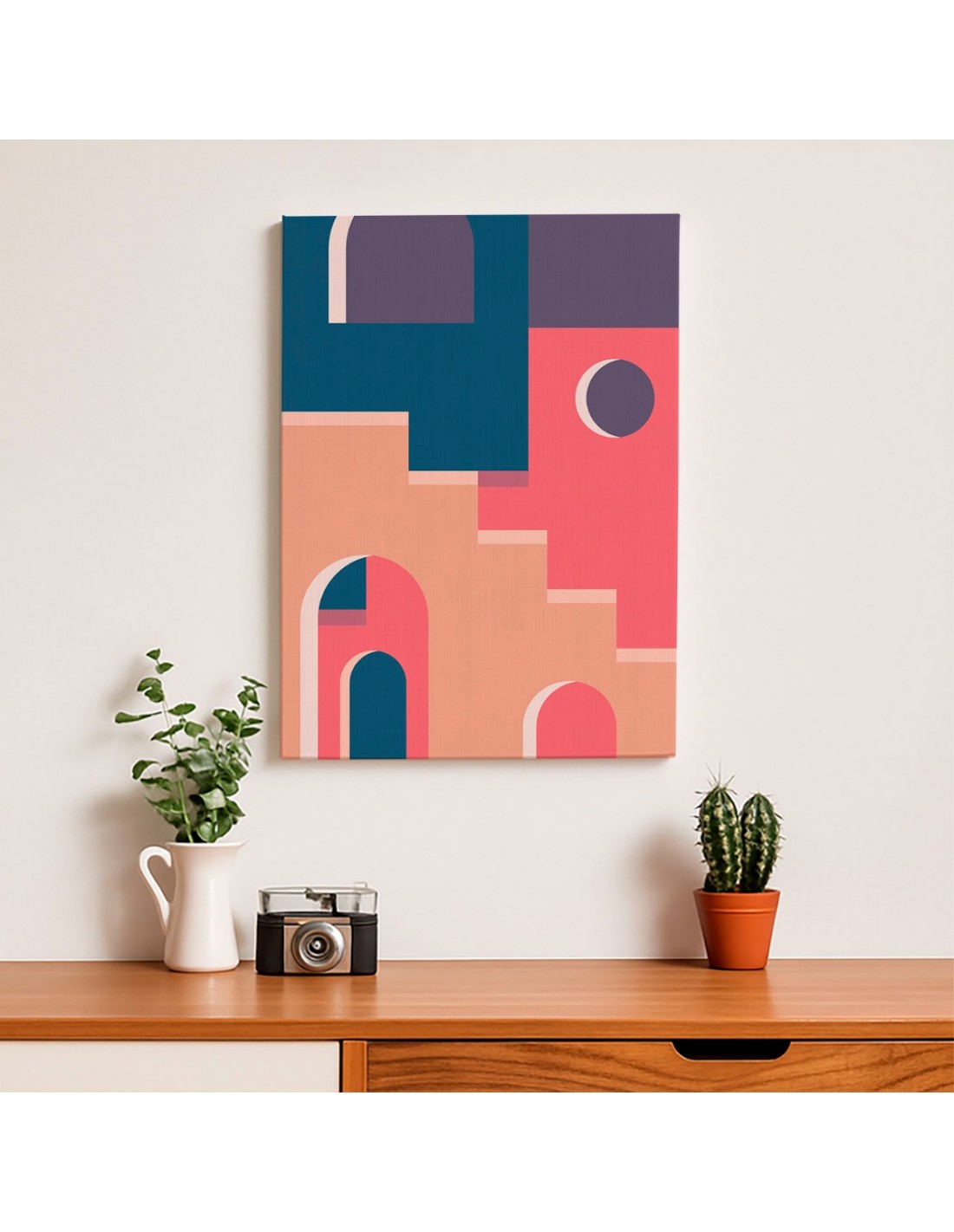 El Cuadro Abstracto Arquitectura 35x50cm Lienzografía D0405 de OSGESTUDIO es impreso en lienzo importado de alta calidad, tensado sobre bastidor de madera de 3 cm de espesor. Elaborado con impresión digital alta resolución, acabado semi brillante, textura artística y montaje listo para colgar. Ideal para decorar salas, estudios, oficinas, habitaciones y espacios con estilo clásico, elegante y artístico.