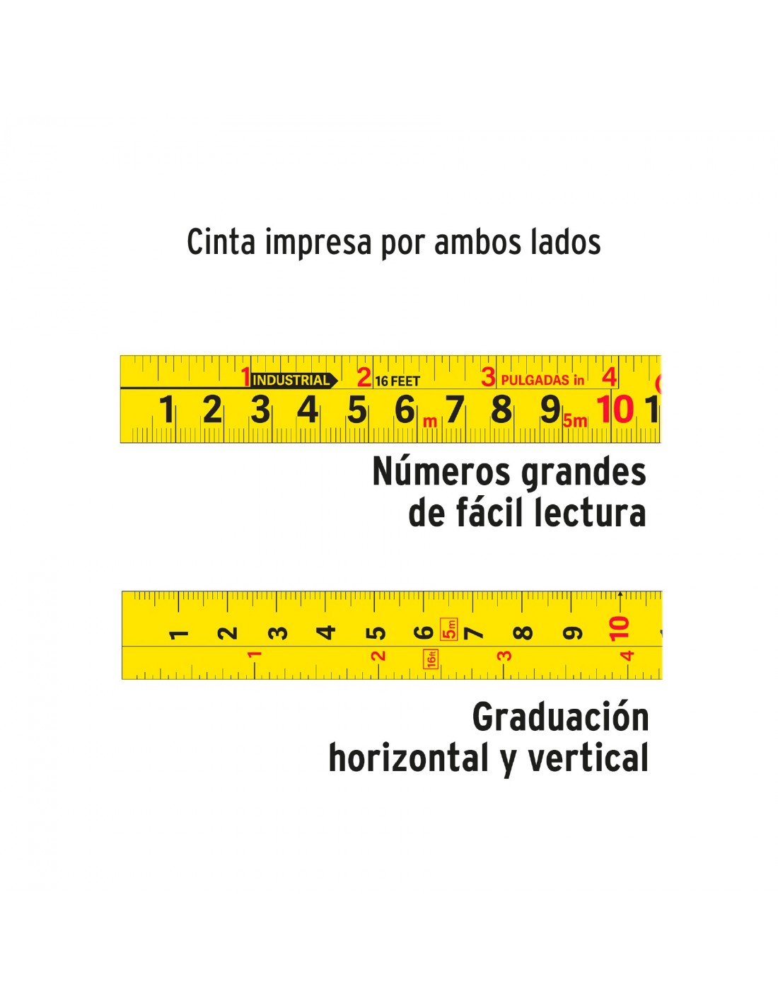 La cinta está impresa por ambos lados y recubierta de laca para maximizar la duración de la graduación. Este modelo también incorpora gancho doble, lo que facilita la medición por ambos lados y mejora la practicidad en diferentes tipos de trabajo.
