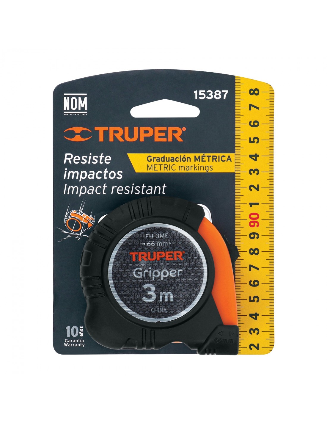 El flexómetro Truper Gripper FH-3ME de 3 m es una herramienta práctica y resistente para tareas de medición frecuentes. Está fabricado con carcasa de ABS y cubierta de TPR, una combinación pensada para soportar impactos y brindar un agarre cómodo durante el uso.