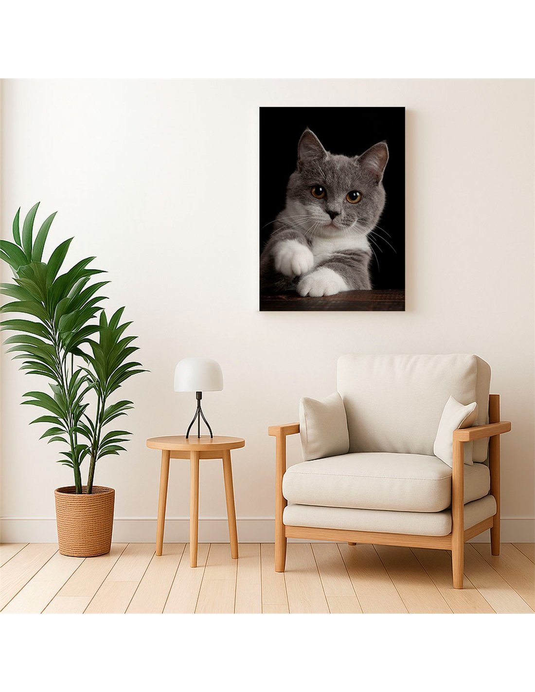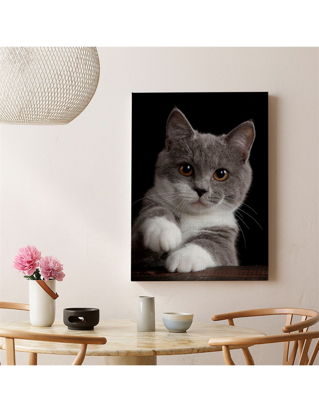 Cuadro gato gris tierno 50x35cm lienzografía - canvas