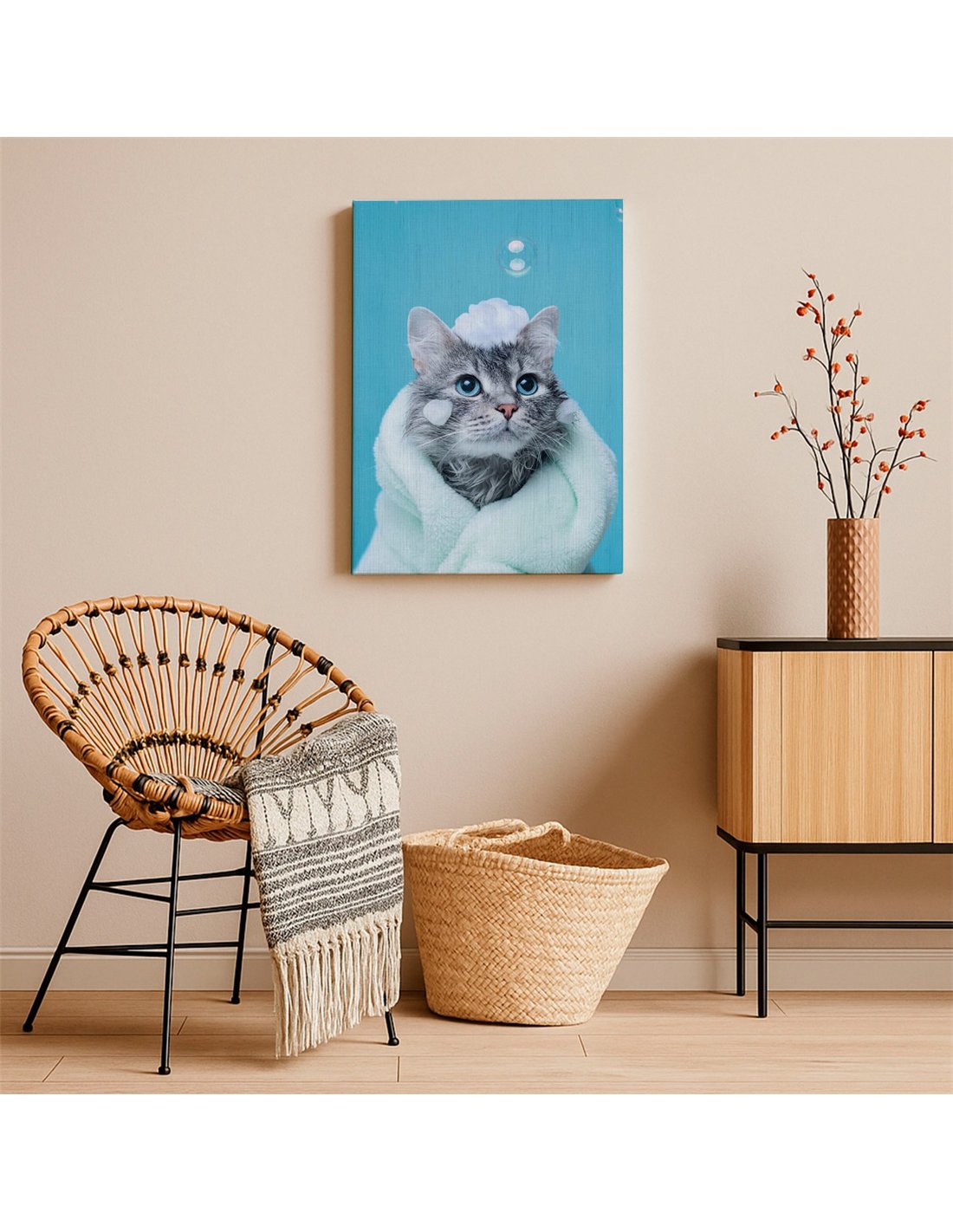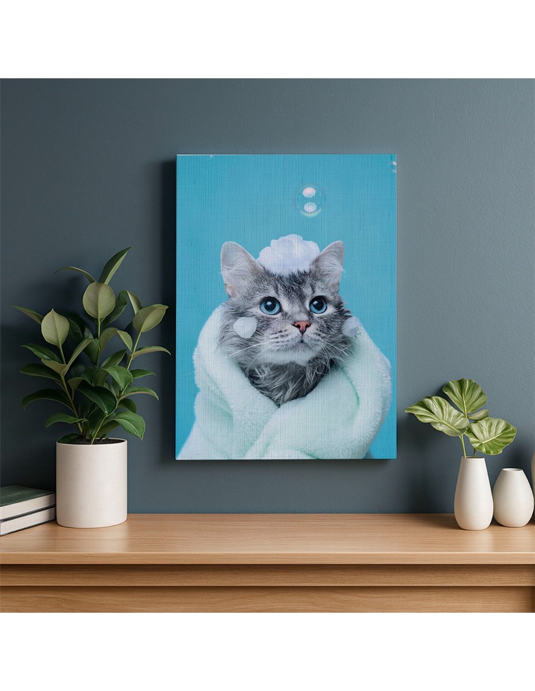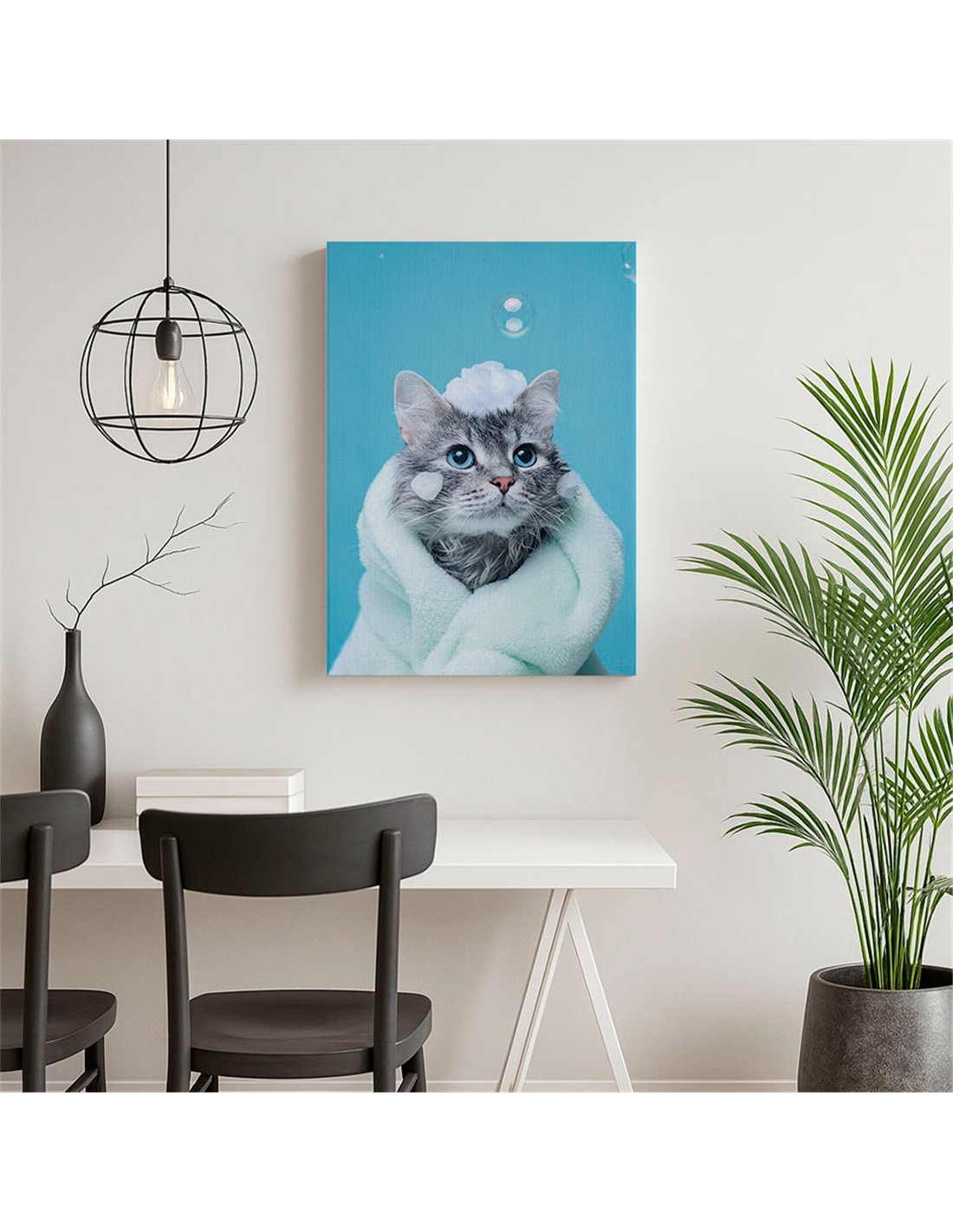 Cuadro gato baño y espuma tierno 50x35cm lienzografía canvas