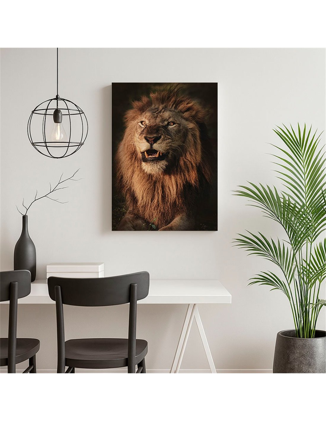Cuadro león rugido real 50x35cm lienzografía - canvas