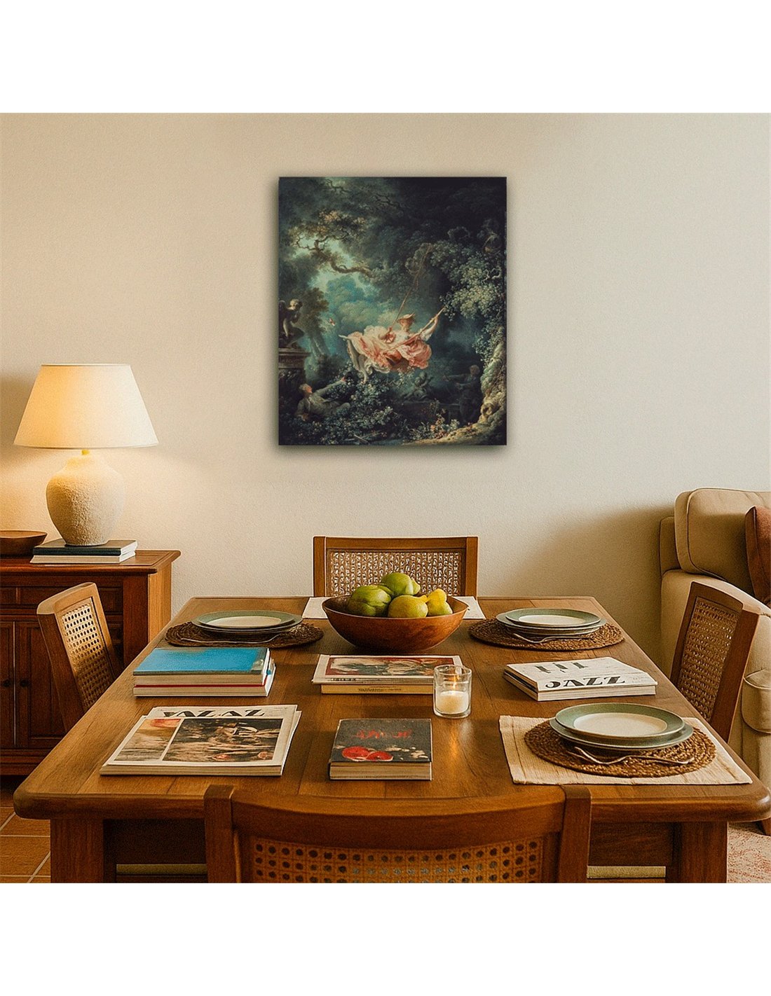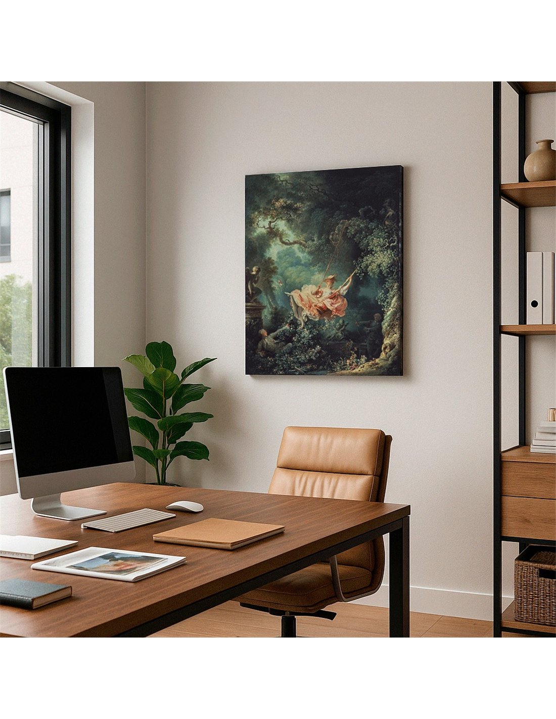 Cuadro decorativo impreso en lienzo canvas de alta calidad, tensado sobre bastidor de madera de 3 cm de espesor. Elaborado con impresión digital alta resolución, acabado semi brillante, textura artística y montaje listo para colgar. Ideal para decorar salas, estudios, oficinas, habitaciones y espacios con estilo clásico, elegante y artístico.